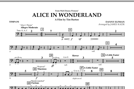 Directed by Tim Burton and starring Johnny Depp, the recent movie Alice in Wonderland shows a new side to this classic tale. Equally distinctive is Danny Elfman's dark and delightful musical score. This well-paced medley features the recurring melody Alice's Theme along with other important themes from the film.