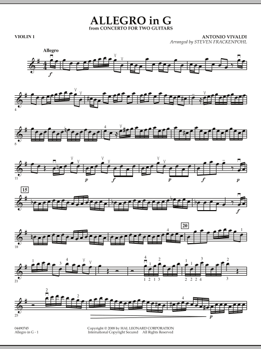 This lively movement is adapted from Vivaldi's Concerto for Two Guitars, carefully crafted for string ensemble by Steven Frackenpohl. In true Vivaldi style, the ensemble is driven by energetic rhythms that make all parts interesting and fun to play. Another outstanding edition for young string orchestra teaching and performance.