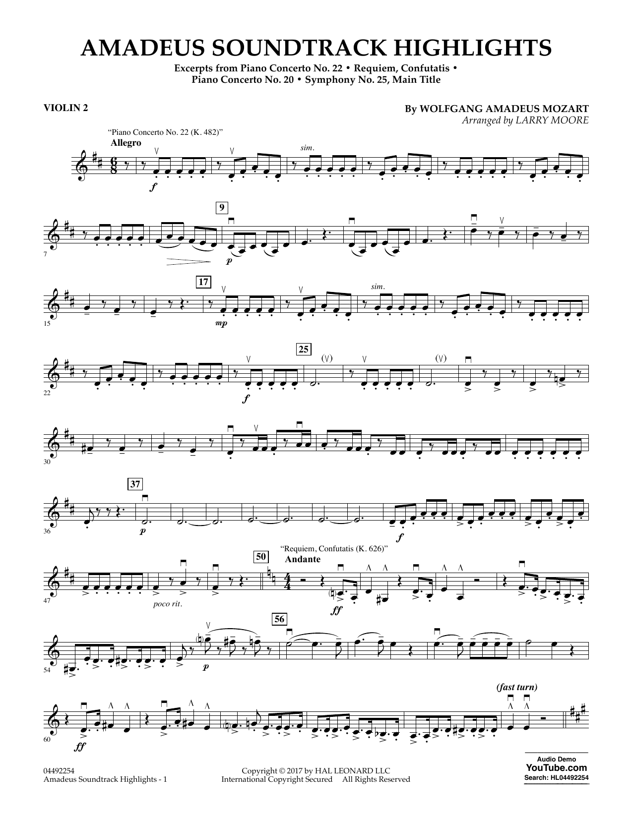 Ein wunderbares Medley von Larry Moore mit bekannten Themen aus Wolfgang Amadeus Mozarts Klavierkonzerten Nr. 20 und 22, seinem Requiem sowie der Sinfonie Nr. 25 in g-Moll.