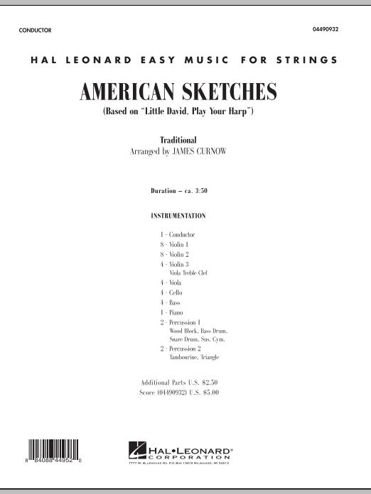 Based on the spiritual Little David, Play Your Harp, James Curnow combines an American orchestral style with contemporary harmonies and orchestration to craft an impressive movement for strings. Simple tempo and style changes add interest and color to this wonderful work for student players.