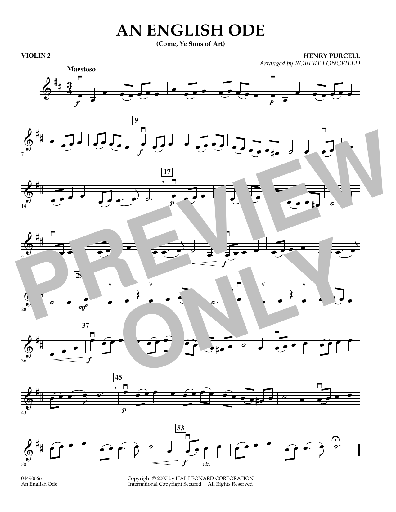 (Come, Ye Sons of Art) - Violin 2