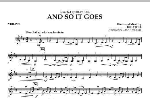 A simple and reflective song, 'And So It Goes' is one of Billy Joel's signature songs from his legendary career. This new treatment for strings gives moving, flowing and melodic lines for each section. A terrific number for most any program or special occasion.