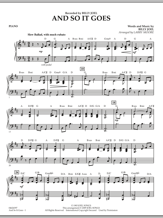 A simple and reflective song, 'And So It Goes' is one of Billy Joel's signature songs from his legendary career. This new treatment for strings gives moving, flowing and melodic lines for each section. A terrific number for most any program or special occasion.