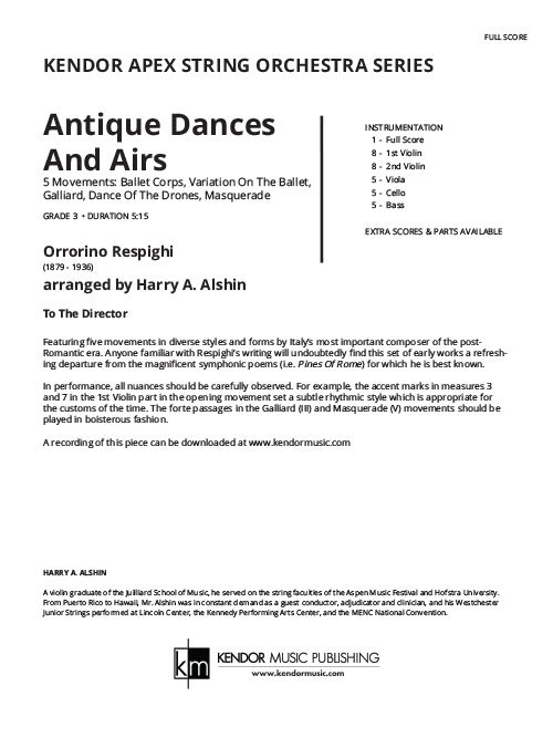 Featuring five movements in diverse styles and forms by Italy's most important composer of the post-Romantic era, this set of early Respighi works is a refreshing departure from the magnificent symphonic poems (ex. Pines of Rome) for which he is best known. All accents, articulations and dynamics should be carefully observed, and the forte passages in the Galliard and Masquerade should by played in boisterous fashion. Duration 5:15.