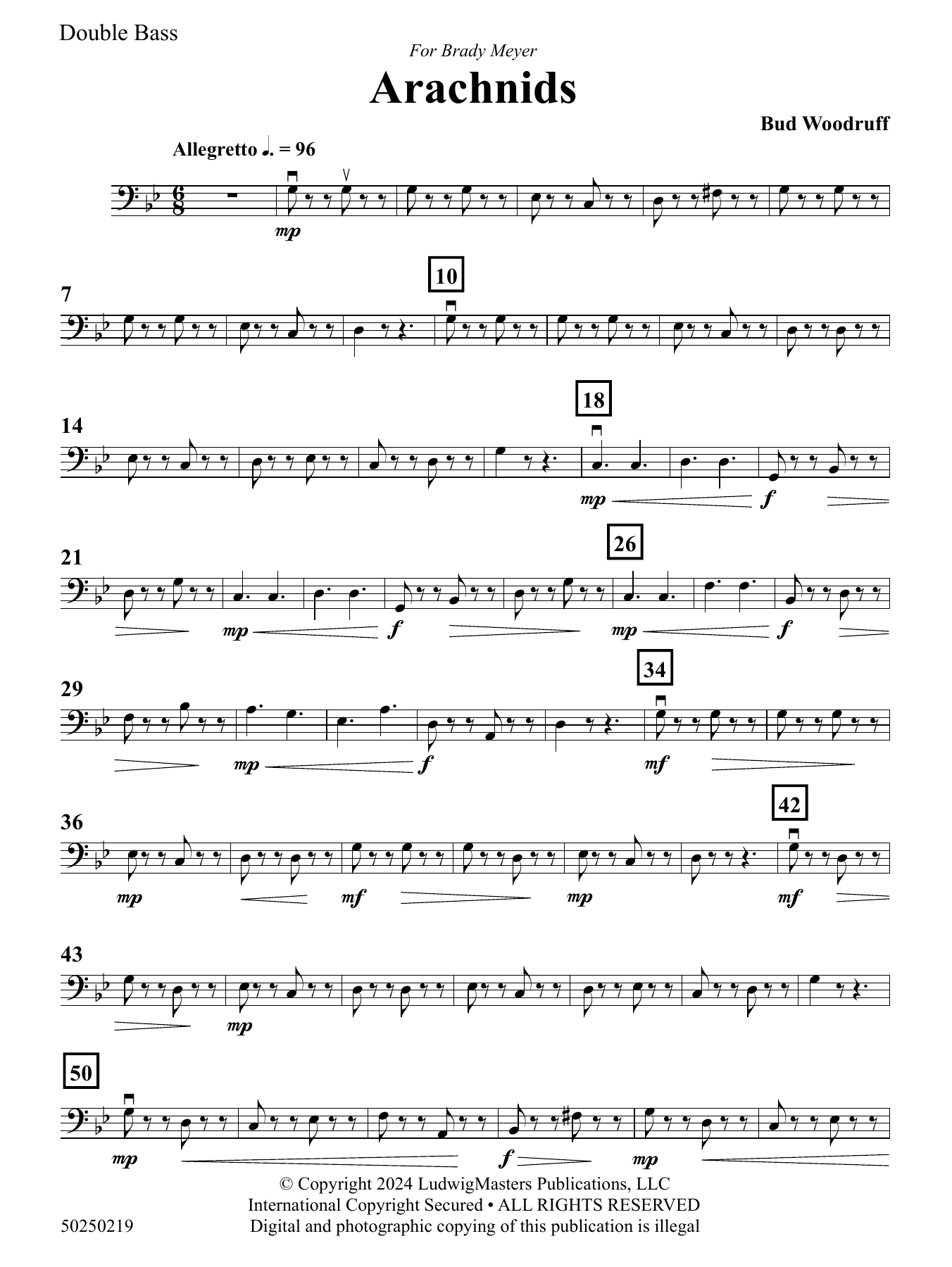 Arachnids is written by Bud Woodruff in the spirit of a tarantella (Italian for Tarantula). This piece is intended to be a cello section feature focusing on third position technique, with a couple forays into first and fourth positions. It also employs hooked bowings at one place or another for each of the sections of the orchestra. (2:00)