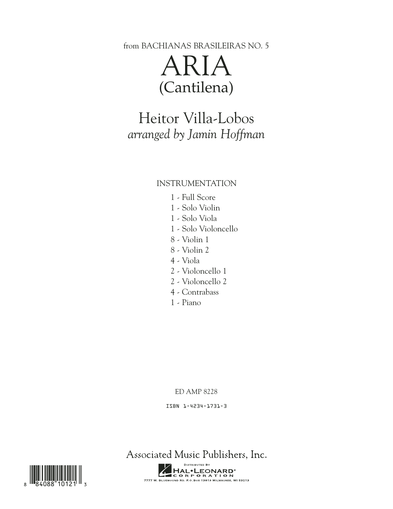 This famous aria pays homage to Johann Sebastian Bach and remains one of the most popular of Villa-Lobos' works, originally written for solo soprano and eight celli. Jamin Hoffman's setting for string orchestra spotlights a violin soloista with the beautiful melodic line, which soars and captivates, in the manner of Bach's long non-repeating slow movements. Extraordinary programming for today's string orchestras!