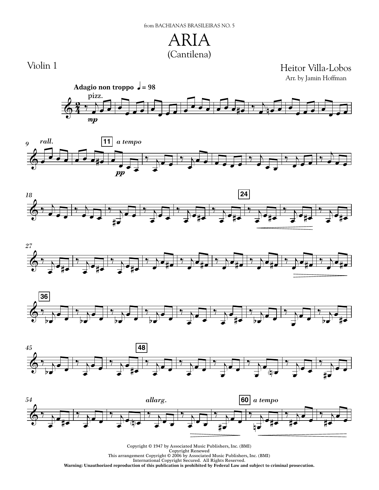 This famous aria pays homage to Johann Sebastian Bach and remains one of the most popular of Villa-Lobos' works, originally written for solo soprano and eight celli. Jamin Hoffman's setting for string orchestra spotlights a violin soloista with the beautiful melodic line, which soars and captivates, in the manner of Bach's long non-repeating slow movements. Extraordinary programming for today's string orchestras!