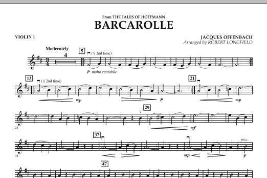 This barcarolle endures as probably the most popular of the three famous barcarolles in Offenbach's legendary opera, The Tales of Hoffman. This new version for developing strings is set in 3/4 with melodic lines for several sections, plus ample and tasteful use of pizzicato in the accompaniment. A longtime light classical favorite.