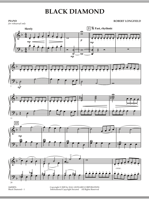 Robert's newest overture for developing groups is a bold, dramatic statement with contrasting sections. The opening lines and dynamics give a visual and aural diamond shape, followed by energetic episodes that surround a lyric, middle theme. Both functional and programmatic, Black Diamond is a sure-fire hit for student players.