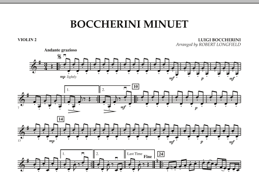 One of Boccherini's most famous pieces, this joyful minuet comes from the third movement of his Quintet in E Major. Robert's version is ideally scored for string ensembles and will make a super program choice.