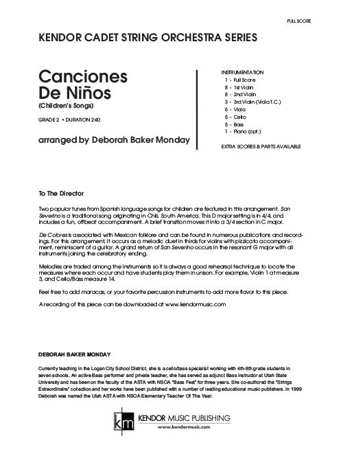 Bring a taste of South America to your next concert with this delightful arrangement of traditional children's songs (San Severino and De Colores). The popular melodies are introduced in traditional style, starting in D major and moving to C. In a resounding return of San Severino in G, all stops are out in this celebratory selection. Duration 2:40. Available in SmartMusic.