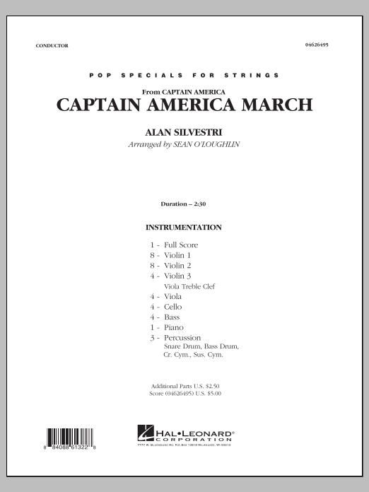 Veteran film composer Alan Silvestri (Back to the Future, Forrest Gump, Polar Express) brings a brilliant adventure theme to this year's blockbuster action film, Captain America. Fanfares, bold and contrasting themes, and rhythmic drive make this a distinctive symphonic march.