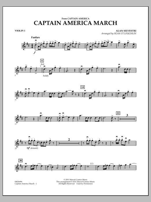 Veteran film composer Alan Silvestri (Back to the Future, Forrest Gump, Polar Express) brings a brilliant adventure theme to this year's blockbuster action film, Captain America. Fanfares, bold and contrasting themes, and rhythmic drive make this a distinctive symphonic march.