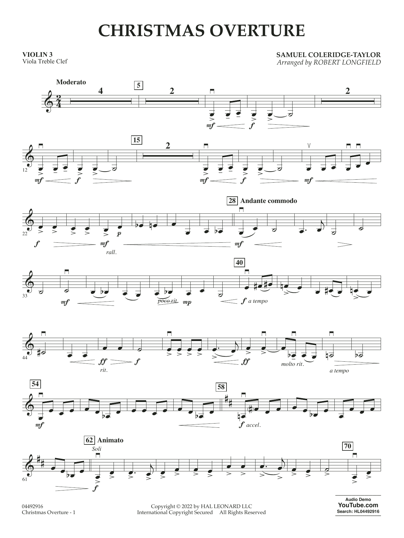 The composer Samuel Coleridge-Taylor achieved such success in his life that he was called the African Mahler by his contemporaries. This arrangement for string orchestra by Robert Longfield uses music from the opening and coda of Coleridge-Taylor's 1925 Christmas Overture (based on Good King Wenceslas and Hark, the Herald Angels Sing) to provide an appropriately festive piece for any holiday concert!