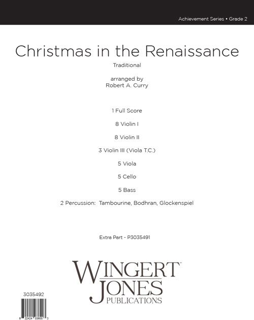 Christmas in the Renaissance verwendet drei Lieder, die aus der Renaissance stammen: Riu, Riu, Chiu; Dadme Albricias Hijos d'Eva und Ding, Dong Merrily on High. Alle drei Lieder wurden ursprünglich als Tänze komponiert, so dass die Musik leicht und schwungvoll sein sollte. Der Perkussionspart trägt zum Charakter der Musik bei.