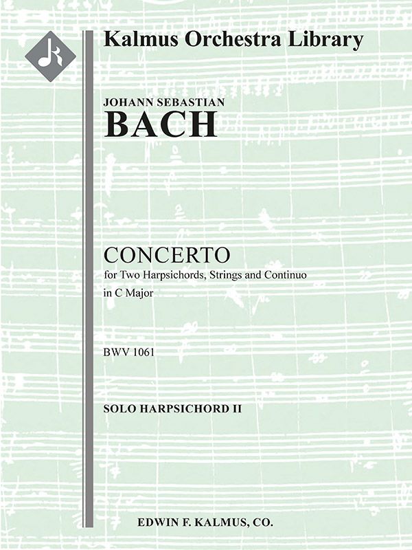 Das Konzert für zwei Cembali in C, BWV 1061, wurde von J.S. Bach (1685-1750) irgendwann in den Jahren 1733-1734 geschrieben und scheint ursprünglich nur für die beiden Solocembali bestimmt gewesen zu sein. Die Streicherstimmen wurden später hinzugefügt, und zwar möglicherweise nicht von Bach selbst. Die Tatsache, dass die Streicher keine eigenständige Rolle spielen, sondern lediglich die Tasteninstrumente verdoppeln, wenn sie spielen, ermöglicht es, dieses Werk problemlos in seiner ursprünglichen Form für zwei Spieler oder mit der Streicherbegleitung aufzuführen, wenn ein gelegentlich vollerer Klang mit verstärkten Kadenzen bevorzugt wird. Besetzungen: Streicher (2-2-2-1-1 im Satz): Soli Cembalos (2) oder nur Soli Cembalos (2).
