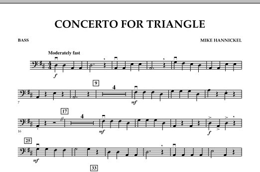 Here's a unique way to add some fun to your program. Staged with a featured player, this piece unfolds with numerous missed opportunities for the triangle soloist (maybe a local celebrity, like the principal, mayor, or a special teacher), and culminates with a big finish - concerto style.