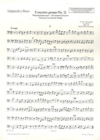 Einzelstimme - Violoncello/Kontrabass - 2 Violinen, Violoncello, Streichorchester und Cembalo