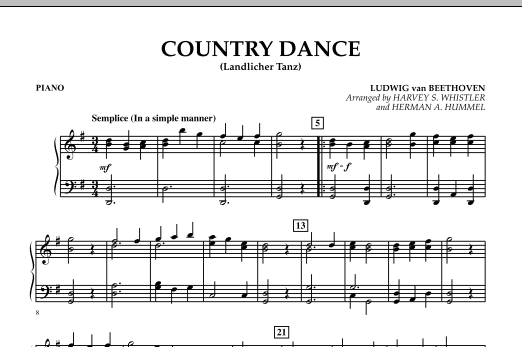 The Laendler (an 18th-century German folk dance) was a popular style among classical composers, who even incorporated them into large symphonic works. Here is a very easy and enjoyable work by Beethoven that uses just quarter note rhythms and basic dynamic changes.