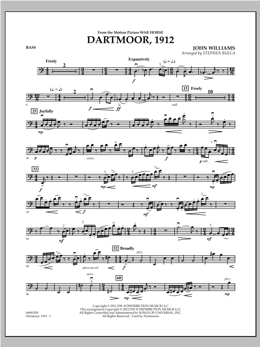 This dramatic setting for strings exemplifies the melodic and harmonic genius of John Williams, displayed in his powerful yet sensitive score from Steven Spielberg's War Horse. In Dartmoor 1912, Williams blends exquisite solo passages with sweeping and rich ensemble sections, all captured wonderfully in this arrangement by Stephen Bulla.