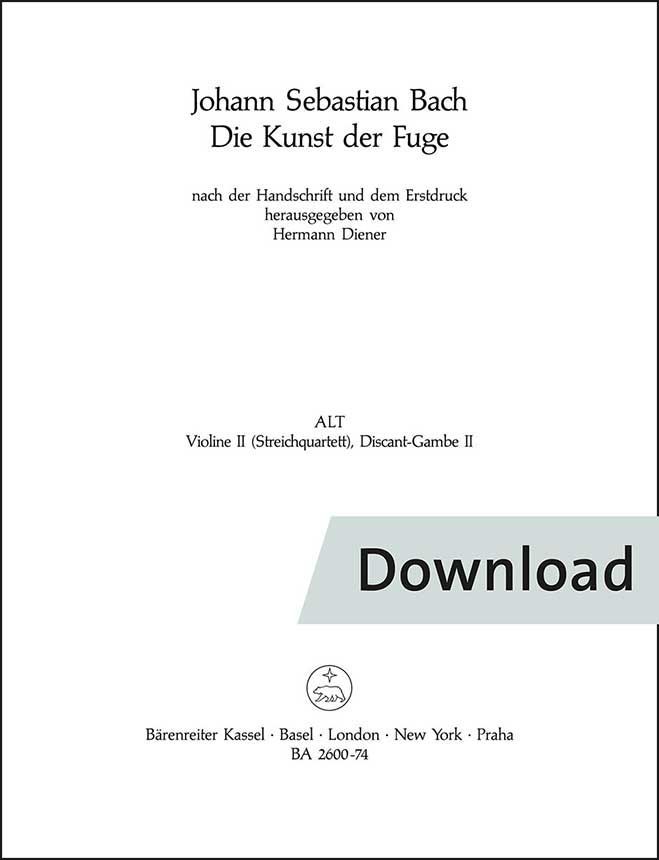 Ausgabe nach der Handschrift und dem Erstdruck für Streichinstrumente. Altstimme. Streichquartettfassung: V II / Originallage: S-Vagb2 - Alto. Violine 2/ Sopran-Gambe 2 - Einzelstimme