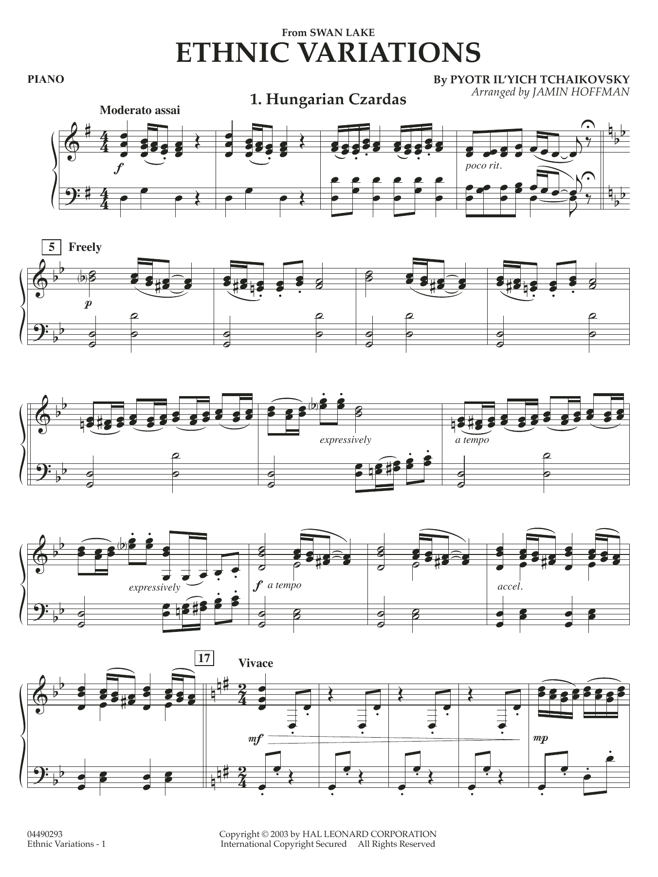 The dances (variations) from Swan Lake offer your students a new insight into the ballet music of Tchaikovsky. Rich, memorable melodies with dramatic flare, coupled with the ethnic dance rhythms make this work a winner for the concert stage. Includes: Hungarian Czardas, Spanish Bolero, and Neopolitan Tarantella.