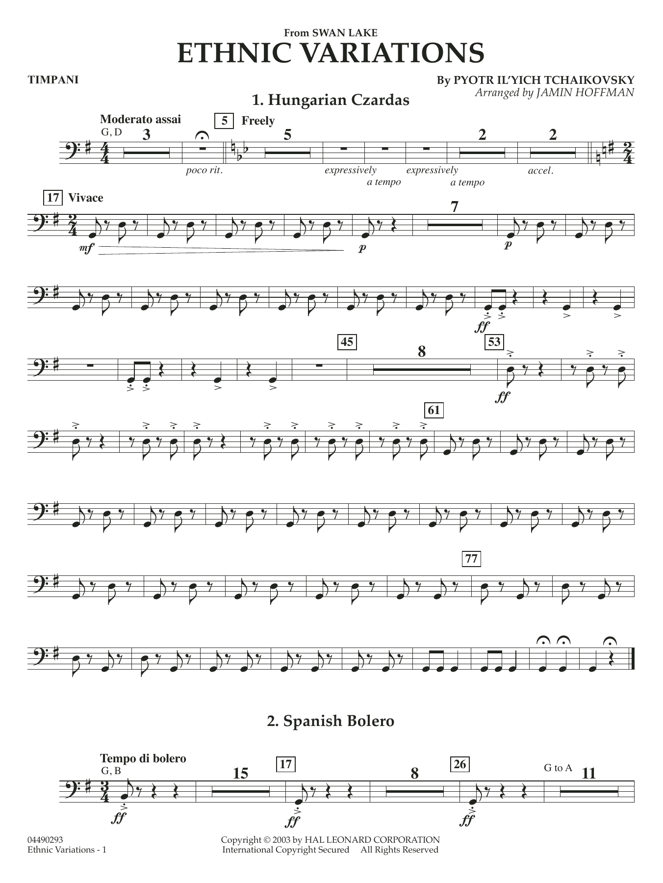 The dances (variations) from Swan Lake offer your students a new insight into the ballet music of Tchaikovsky. Rich, memorable melodies with dramatic flare, coupled with the ethnic dance rhythms make this work a winner for the concert stage. Includes: Hungarian Czardas, Spanish Bolero, and Neopolitan Tarantella.