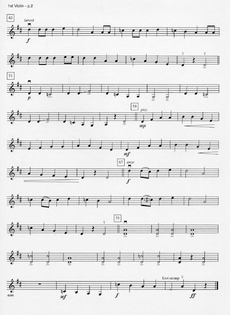 Based on the classic fiddle tune Goin to Boston, this is a great hoedown number for strings. It comes complete with several special techniques found in all fiddle music, including bluesy note slides, shuffle bowings, hand slaps, and foot stomps (specific performance directions for each are included in Frank's score notes). Some easy double stops are also included, but Frank advises that they be assigned only to advanced students and incorporated gradually as players become more familiar with the music.