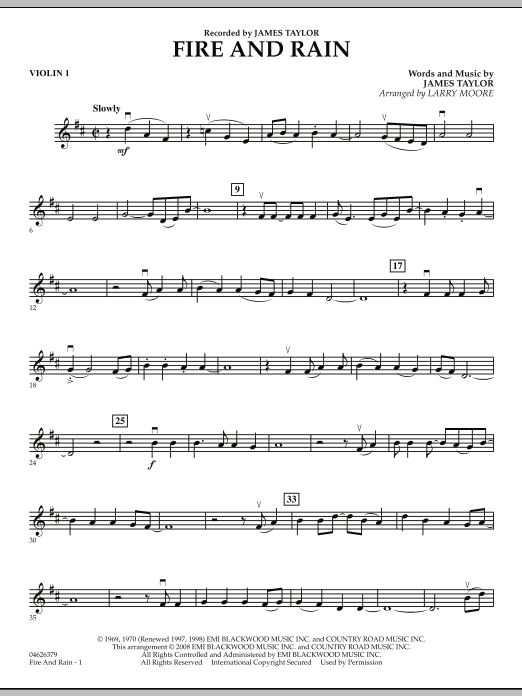A classic song from one of popular music's most revered artists is now available for string groups with this superb arrangement by Larry Moore. James Taylor's Fire and Rain has become a trademark of his simple, enduring style that communicates so well with its listener.