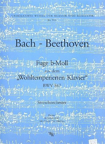 Fuge b-Moll aus dem - ersten Teil von Bachs 'Wohltemperiertem Klavier' in der Fassung für zwei Violinen, Viola und zwei Violoncelli von Beethoven Dass Beethoven in seiner gesamten Schaffenszeit immer wieder auch auf die strenge Form der Fuge zurückgegriffen hat, ist bekannt und bedarf keiner Erläuterung. Nicht übersehen sollte man aber auch, dass Bach für Beethoven nicht nur das geistige Vorbild war; Beethoven setzte sich vielmehr in praktischen Arbeiten mit dessen Stil der Fugenkomposition auseinander, zu denen auch die hier erstmalig als Stimmenausgabe veröffentlichte Übertragung der Fuge b-Moll aus dem ersten Teil von Bachs 'Wohltemperiertem Klavier' zählt. Was Beethoven veranlasst haben könnte, gerade diese Fuge aus dem ,Wohltemperierten Klavier' für eine Übertragung für Streicher zu wählen, muss blosse Vermutung bleiben. In der Fünfstimmigkeit den Anreiz für die Übertragung gesehen zu haben, scheint zumindest fragwürdig, nachdem die andere fünfstimmige Fuge des ersten Teils eben nicht übertragen wurde, wohl aber die vierstimmige Fuge in h-Moll für Streichquartett. Überzeugender erscheint als Begründung, dass es Beethoven bei dieser Arbeit um die Darstellung eines gewissen Problems in dieser Fuge gegangen sein könnte: Der Klaviersatz dieser Fuge gibt über die pausierenden Stimmen infolge der fehlenden Pausenzeichen nur begrenzt Aufschluss. Die Takte 38-45 beispielsweise sind dreistimmig gearbeitet; der Wiedereintritt der beiden Oberstimmen erfolgt jedoch nicht regelgerecht: Die in Takt 53 entstandene Fünfstimmigkeit ergibt sich vielmehr aus der Einführung einer neuen Stimme zwischen der bisherigen vierten und fünften Stimme, wodurch die frühere dritte (Mittel-) Stimme zur zweiten Stimme umgedeutet wird. Dieser Tausch der Stimmlage, der bei der Rezeption des Klaviersatzes kaum bewusst wird, ist bemerkenswert als eine eigenwillige Freizügigkeit, die sich Bach als Meister des Kontrapunkts mit den überlieferten Fugenregeln erlaubt hat. Die partiturmässige Verteilung der Stimmen jedoch macht das Problem sogleich augenfällig. Es wäre nun durchaus denkbar, dass Beethoven beim Studium der Bachschen Fugen auf diese Abweichung von der Regel gestossen ist. Das sich für den Streichersatz ergebende Problem löst er nun durch den Kunstgriff eines - im linearen Satz eigentlich unzulässigen - Doppelgriffs in Takt 37, der durch die Abschlussnote der zweiten Stimme zusammen mit dem Themeneinsatz der dritten Stimme gebildet wird, die jetzt als zweite Stimme (Violine II) weitergeführt wird. Diese Rückung bedingt auch die nachfolgende Neuverteilung der Stimmen; lediglich die Bassstimme ist in ihrer Linienführung dem Bachschen Klaviersatz gleich. Darüberhinaus enthält die Übertragung folgende Abweichungen vom Klaviersatz: Den in Takt 50 und 68 jeweils enthaltenen Einklang zweier Stimmen, der für den Klaviersatz klanglich ohne Bedeutung ist, vermeidet Beethoven durch Pausieren einer Streicherstimme (Violine II). In Takt 30 wird die zweite und dritte Stimme miteinander vertauscht, wobei die ganze Note b in zwei Halbe aufgeteilt wird. In Takt 73 wird in der zweiten Stimme die ganze Note g ebenfalls in zwei Halbe aufgeteilt. In Takt 33 verzichtet Beethoven in der zweiten Stimme auf den Vorhalt des angebundenen es und schreibt dafür eine ganze Note des, um die Oktavverdoppelung des Terztons des auf dem dritten Viertel zu vermeiden. In Takt 38 wird in der fünften Stimme die halbe Note ges als Viertel notiert und als zweites Viertel weiter zum f geführt. In Takt 21 nimmt Beethoven in der Viola das b aus Takt 22 vorweg, wodurch zwischen der Violine I und Viola offene Quinten entstehen. In Takt 51 fehlt in der Violastimme vor dem d das Auflösungszeichen. In Takt 58 fehlt in der Violastimme vor dem vierten Viertel ein b. In Takt 71 wurde in der Violastimme von Beethoven die halbe Note f als zwei durch Bindebogen gebundene Viertel notiert. In Takt 70 steht in der fünften Stimme (Violoncello II) statt einer halben Note f irrtümlich eine Pause. Die Ausgabe v