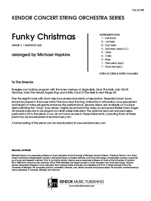 Funky Christmas is a fun mashup of Jingle Bells, Deck The Halls, Jolly Old St. Nicholas, and Hark, The Herald Angels Sing, with a little bit of Carol Of The Bells to kick things off. This is a great piece to work on syncopated rhythms. The piece comes with optional drum set and percussion, or you can play with a backing track. Duration 4:35.