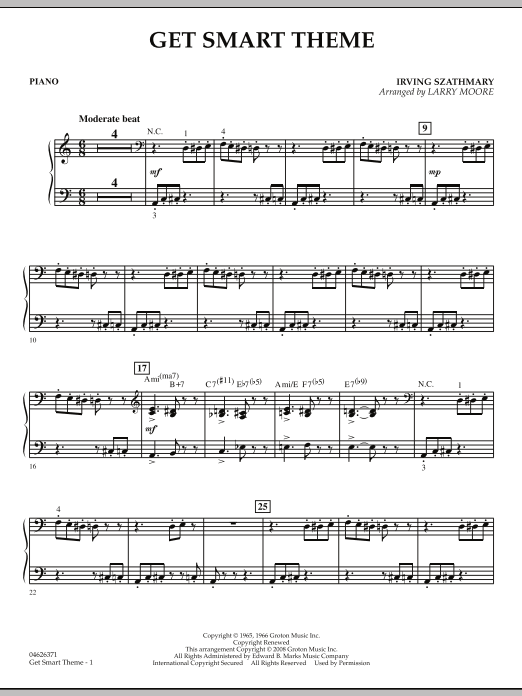 With a new film starring ultra-buffoon Steve Carrell, special agent Maxwell Smart is accompanied by the classic TV theme that will bring a grin to any listener's face. Lighten up your program with this clever version for strings by Larry Moore.