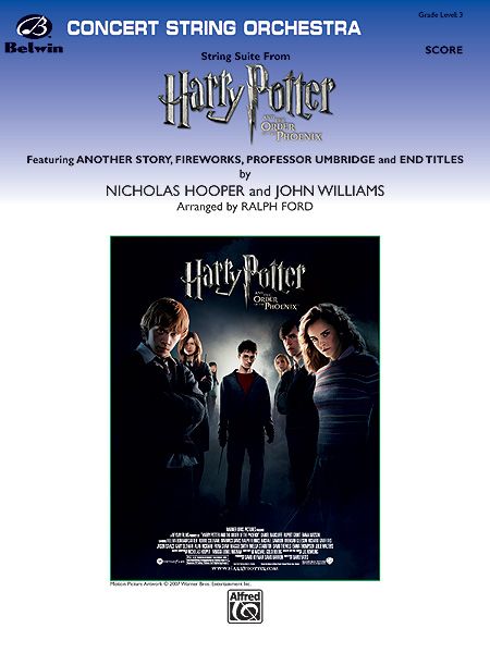 Perfect for the slightly more advanced string orchestra, this fun but haunting four-movement suite features 'Another Story,' 'Fireworks,' 'Professor Umbridge' and the 'End Titles' from the sixth blockbuster Harry Potter movie. Music from Harry Potter and the Order of the Phoenix will be a sure hit! (6:35)