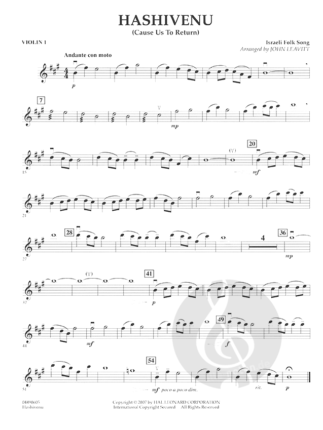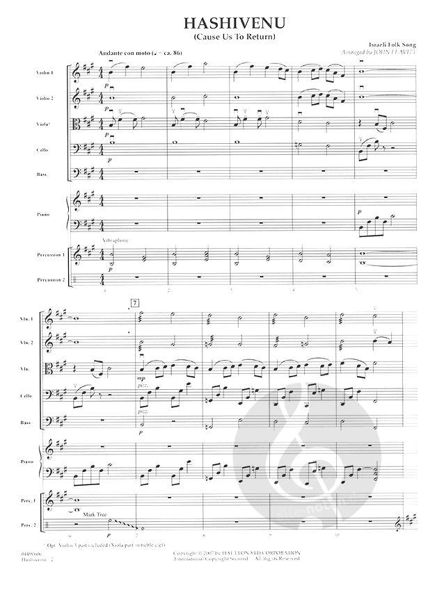A traditional Israeli folk song with text from the Bible, Hashivenu means Cause Us to Return, and is scored sensitively for strings in this stirring rendition by John Leavitt. Here's a chance to give your students the opportunity to perform and understand some meaningful, cultural music from another land. Dur: 2:40