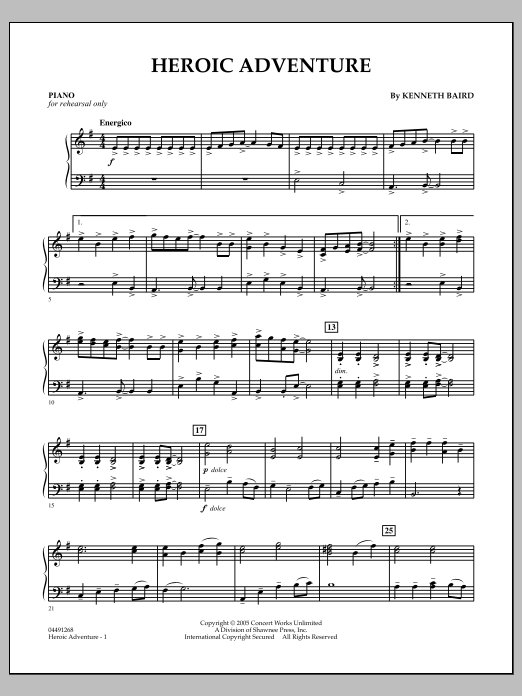 Heres a bold modal-based mini-overture for younger players that has great appeal with its 'adventure' sound and energy, driven by easy syncopation. With a contrasting dolce center section, it's all in one tempo and makes a fabulous teaching and performance work.
