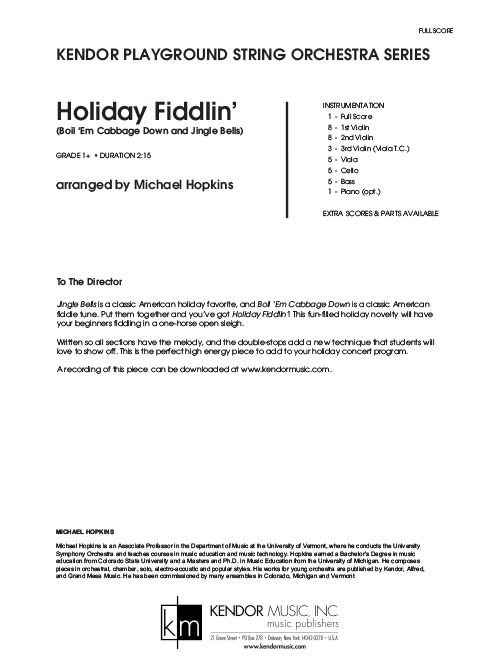 Your students will love playing this fun-filled creative holiday arrangement. Combining Boil Em Cabbage Down with Jingle Bells, this grade 1+ piece is a great high energy piece to add to your next Christmas concert program. Each set also includes three copies of the 3rd Violin/Viola T.C. part and an optional piano part. Duration 2:15.