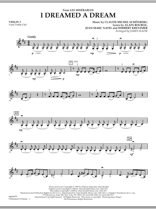 (from 'Les Miserables') - Violin 3 (Viola Treble Clef)