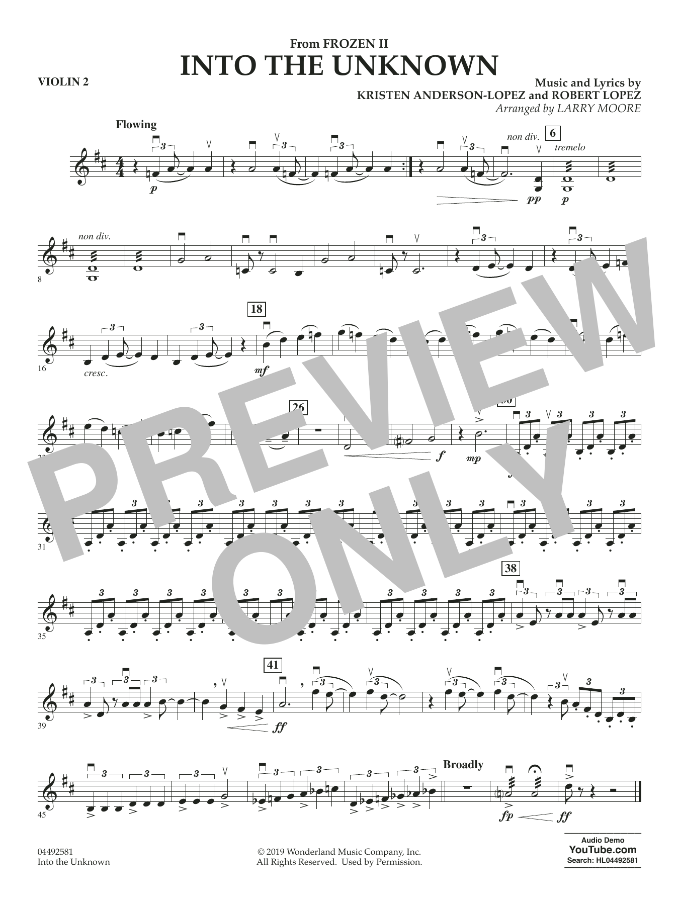 Larry Moore hat den wunderschönen Song 'Into the Unknown' ('Wo noch niemand war') aus Disneys zweitem Eisköniginnen-Film in ein Schmuckstück für Streichorchester verwandelt, das mit den zusätzlichen Stimmen für Klavier und Percussion noch mehr an Klangfarben gewinnt.