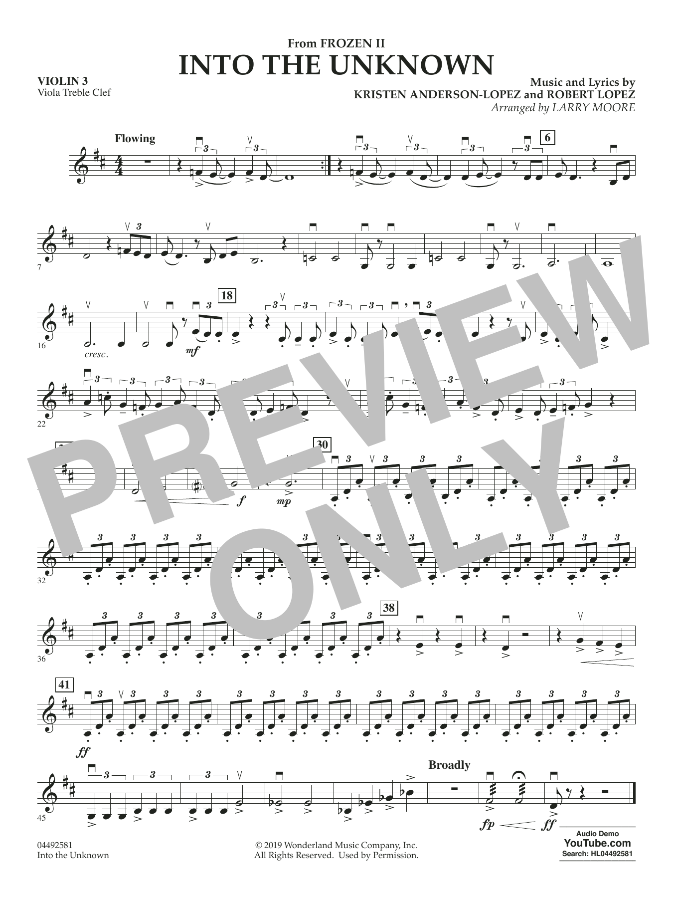 Larry Moore hat den wunderschönen Song 'Into the Unknown' ('Wo noch niemand war') aus Disneys zweitem Eisköniginnen-Film in ein Schmuckstück für Streichorchester verwandelt, das mit den zusätzlichen Stimmen für Klavier und Percussion noch mehr an Klangfarben gewinnt.