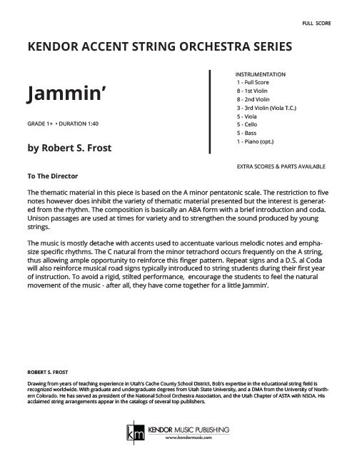This delightful original features the pentatonic A minor scale. Set in a brisk tempo (quarter note = 120-132), the thematic material is highly rhythmic and effectively drives the music from the introduction to the final measure. While all parts are interesting, violas will especially love this one. Duration 1:40.