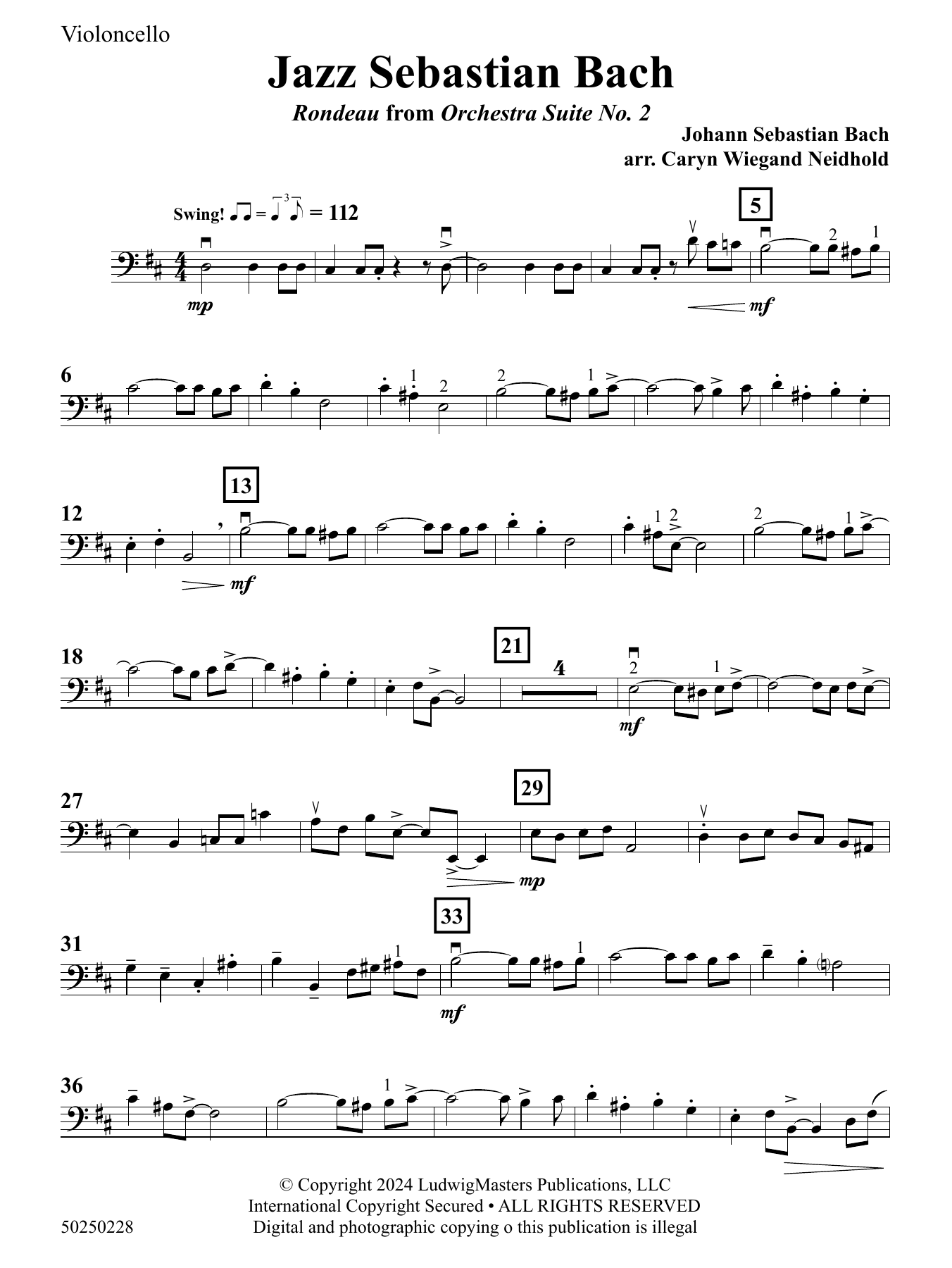 Bach never sounded more cool or hip than he does in Jazz Sebastian Bach by Caryn Wiegand Neidhold! The Rondeau from Orchestra Suite No. 2 is transformed into a swinging chart with a walking bass line, including a written solo for all instruments and suggested notes for improvised solos. This arrangement transports students to a world where jazz and Baroque styles unite in perfect harmony. (3:00)