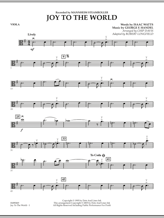 Now available for string orchestras, Joy to the World is one of the distinctive arrangements of Chip Davis and Mannheim Steamroller. Players and audiences love these contemporary pop versions that dominate the airwaves during the holidays, adapted here by Robert Longfield.