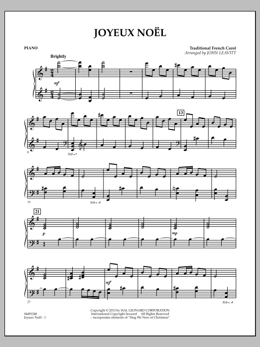 Master arranger John Leavitt gives this favorite French carol a fresh, creative sound with this new arrangement for strings. Accompanied by sparkling percussion and piano as important parts of the orchestration, the musical resultmakes a wonderful center piece for a holiday performance.