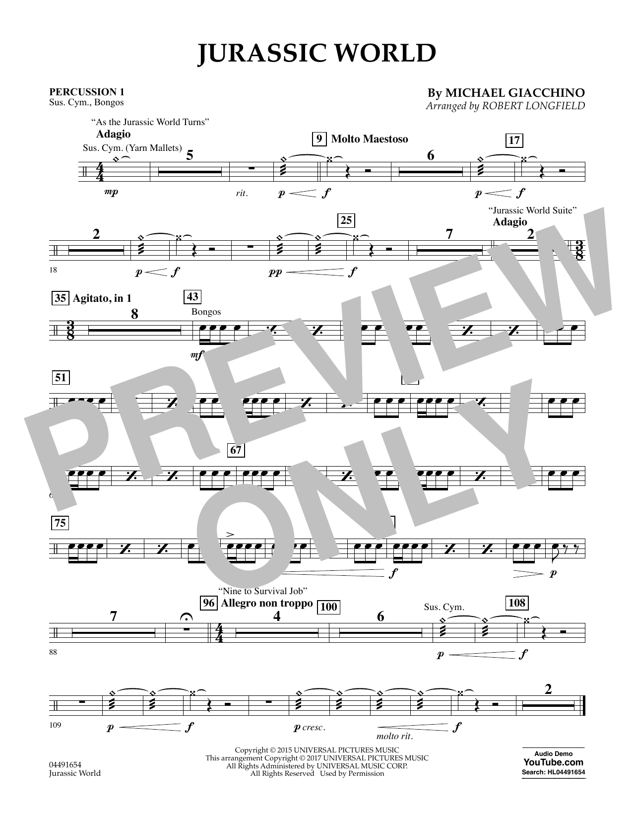 Yet another blockbuster film in the iconic adventure series that pits man against beast, and this time it features a colossal orchestral score from Michael Giacchino. Students will once again love to play this new film music that's bold and dramatic, and will inspire them to sound their very best.