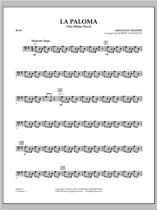 Everyone will recognize this famous tango (also known as The Dove) and its signature traditional tango rhythms that mix triplets against dotted duple figures. Robert's new arrangement is well designed for string ensemble, superbly written with effective use of pizzicato, easy tremolo, and melody moments for all sections.