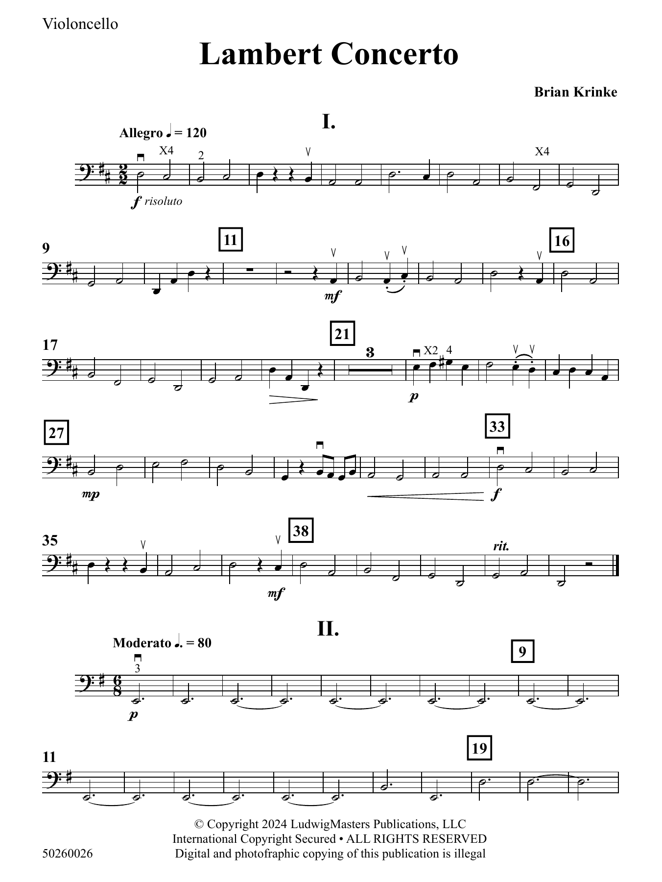 The Lambert Concerto is an original work by Brian Krinke, perfect for young violin students ready to tackle their first concerto. It was written for one of Krinke's talented violin students whose father was a composer as well. It has been performed successfully by a number of violin students, and this new string orchestra accompaniment has allowed the composer the opportunity to expand some of the harmonies, as well as for the student to perform the work with their peers. (4:00)