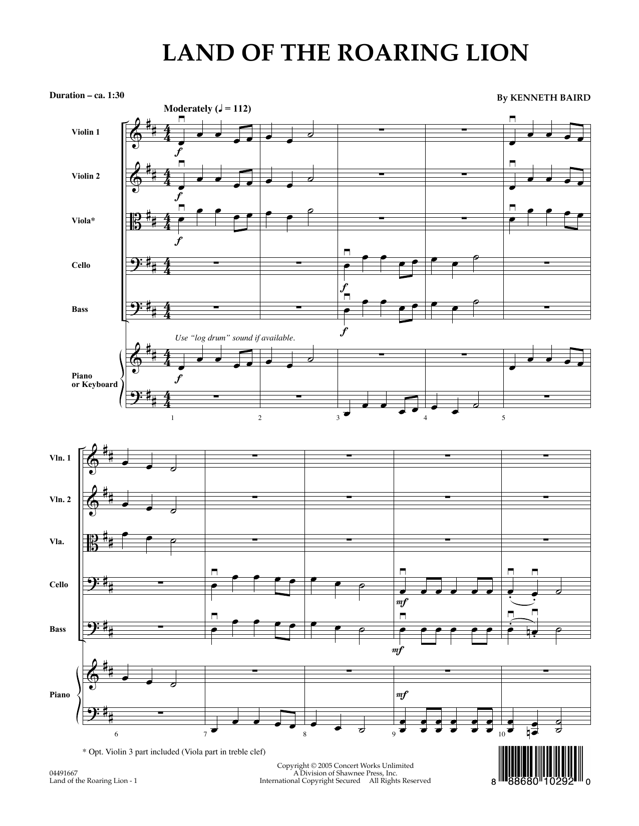 A fun, well-crafted ensemble piece for beginning level players that features imitation between sections, simple harmony in parallel lines, and bold, modal sonorities. As always, Kenneth Baird creates interesting parts for all players.