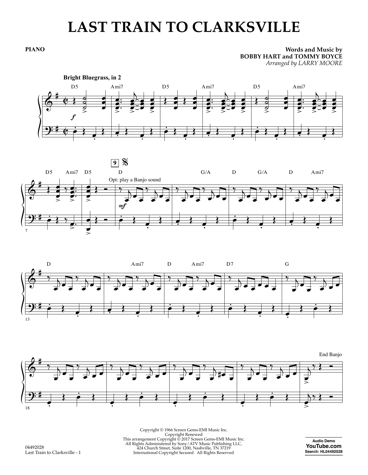 An all-time favorite from the Monkees has endured for five decades, this version from Larry Moore sends the train right out to country fiddle land. Great fun that can also feature a fiddlin' duet and an optional keyboard/synth/banjo part.