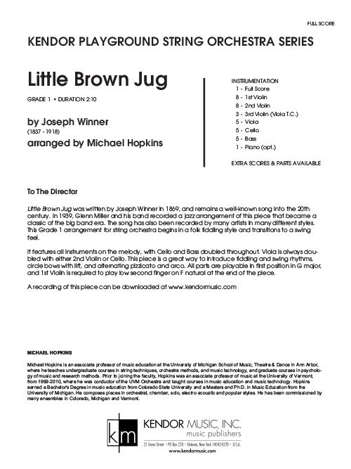 This fun, grade 1 arrangement of the classic American song by Joseph Winner features everyone on the melody. Cello and Bass are doubled throughout, and Viola is always doubled with either 2nd Violin or Cello. This is a great way to introduce fiddling and swing rhythms, circle bows with lift, and alternating pizzicato and arco. All parts are playable in first position in G major. Each set includes three copies of the 3rd Violin/Viola T.C. and piano parts. Duration 2:10. Available in SmartMusic