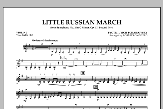 The colorful, tuneful march from Tchaikovsky's second symphony, considered to be one of his most joyous works, makes an ideal teaching piece with its distinctive dotted 8th-16th note figure throughout. The nickname Little Russia was given to the symphony based on its use of Ukrainian folk songs.